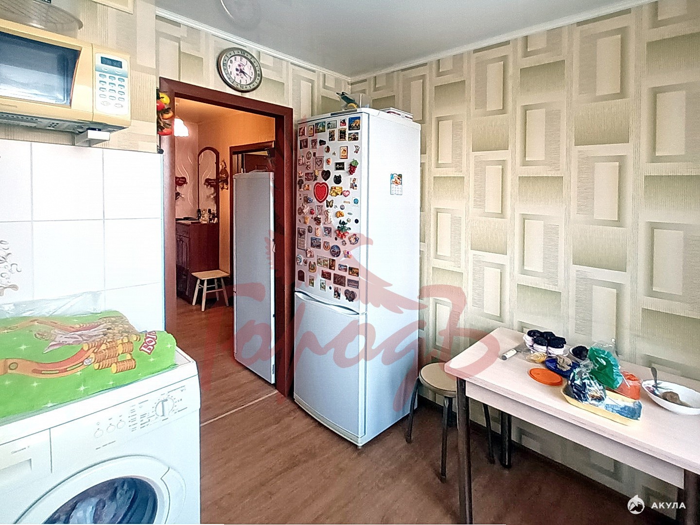 В квартире остаётся вся мебель: стенка, диван, шкаф-купе, стеклянный столик, 2 холодильника, 2 телевизора, стиральная машина, микроволновая печь, мебель в кухне.