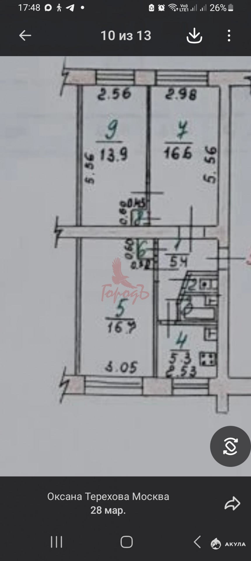 Квартира распашонка, окна выходят на обе стороны дома, очень высокий цоколь, 3 комнаты, санузел раздельный, есть кладовка, требует ремонта. В доме есть подвал.